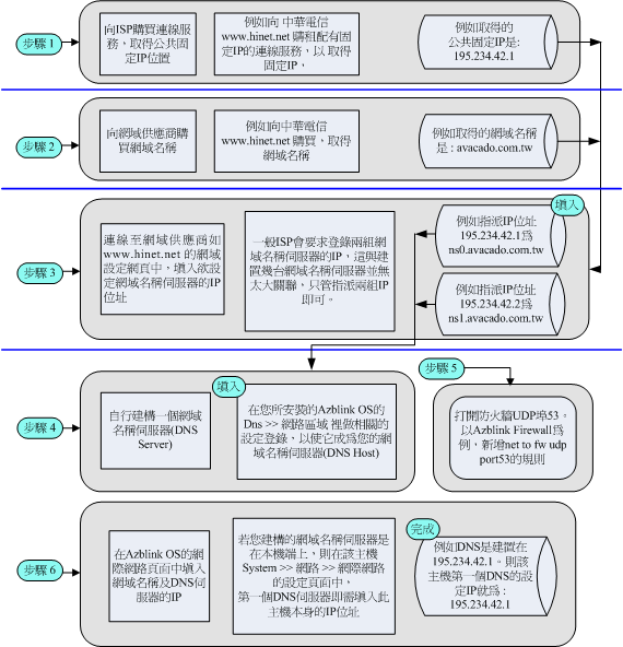 選擇自行架設DNS伺服器 ---取得固定IP位址、網域名(域名)、域名伺服器及相關設定步驟