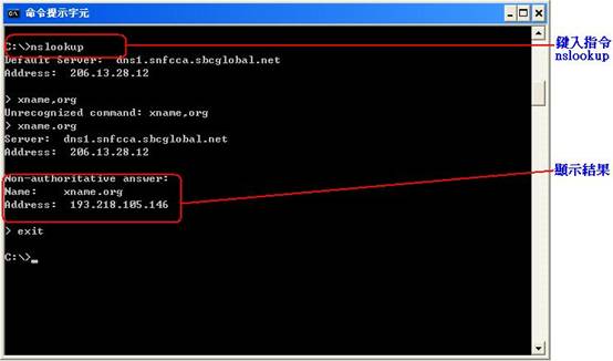 (開始→執行→輸入指令cmd),鍵入「nslookup」命令如下: