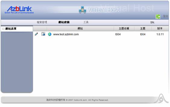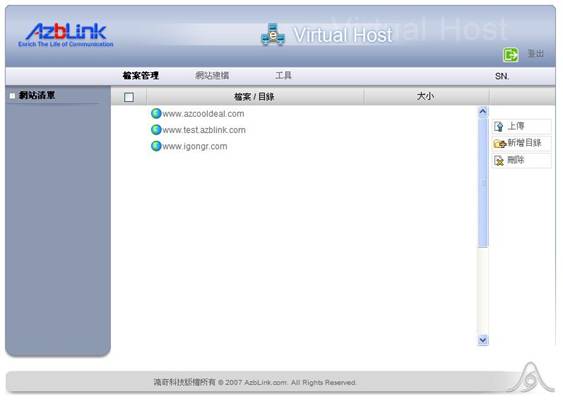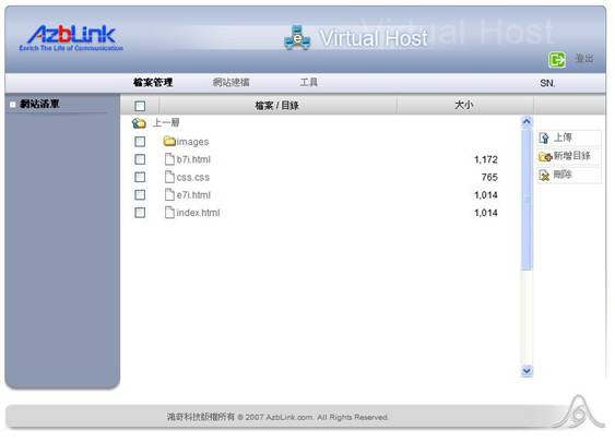 在管理端所介紹的虛擬主機最主要為主機的管理,而用戶端所提供的虛擬主機管理之功能,主要是針對網頁網站的部分。提供客戶可以將自己的公司網站網頁檔案上傳到主機空間上,亦提供客戶利用網站樣版來建構企業形象網站。