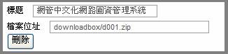 外,使用網站樣版後若有圖片以外的檔案要上傳至網站,如文件(.pdf或.doc)、輔助程式與工具這一類的檔案,亦可藉由此處上傳至檔案目錄資料夾存放。視實際需要,可自行新增所需的目錄資料夾,或是直接使用樣版中所提供的下載資料夾「downloadbox」,而日後要編輯給客戶下載的載點,只需將當初放置檔案的路徑填入便可。舉例來說,網站管理者david將一個名為d001.zip的檔案上傳到downloadbox的檔案目錄資料夾存放,他的目的是要把d001.zip這個檔案放在網站上讓人下載,由於d001.zip是存放在downloadbox的資料夾裡,所以在檔案位址的欄位就必須填入「downloadbox/d001.zip」這樣的檔案路徑。