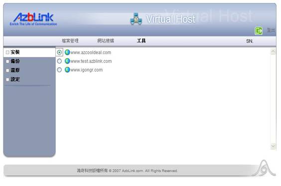 提供樣版安裝、網站備份、網站還原以及網站參數設定的功能。