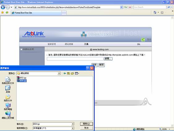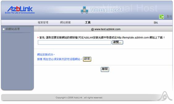 - 使用網站樣版:反之,什麼網頁都沒有。可至Azblink.com網站的樣版下載頁面,購買喜好的網站樣版,再把購買下來的網頁封裝檔上傳並安裝,之後依實際情況將資料調整即可。