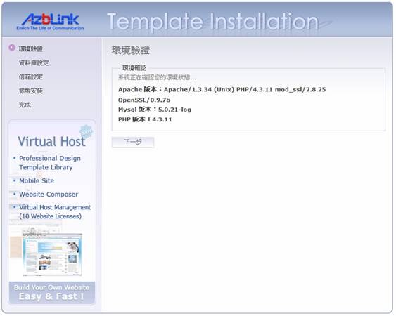 *圖三是安裝過程中的驗證畫面,回報環境狀態,檢視主機裏相關服務程式的版本,按下一步。