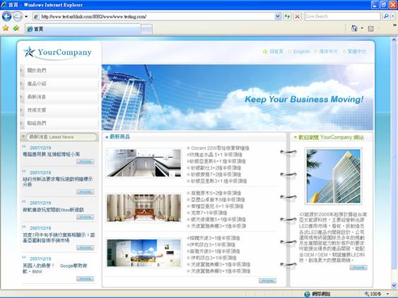 企業網站是一個企業在網路上,甚至是真實世界中的門面;尤其在跨國或跨地域之企業中佔有絕對的重要性,有愈來愈多的企業運用它提高市場競爭力。除了可塑造企業形象外,並可提供產品介紹與銷售的服務,是企業發展電子商務時,非常重要的一項規劃。 然而企業網站該怎麼建構? 從使用者的觀點,連結上企業網站目的不外乎有兩種:一是想了解該公司的產品資訊,另一個則是尋找公司的相關介紹或近期營運概況。建構一個企業網站聽起來似乎費時又費工,而且後續的維護及更新也不是一件輕鬆的事。不過,此系統中所提供的功能卻可以協助解決這類的麻煩。