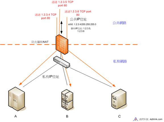 該架構可以以如此方式來操作--- 將若干IP位址放進 System >> 網路 >> 網際網路 ,在IP別名欄位逐一新增;然後在 Border Control >> 規則 >> 新增規則 處,您可以增加規則,將 IP別名 放入初始目的IP的位置,並使用DNAT的指令方法來轉送IP別名 的傳輸。