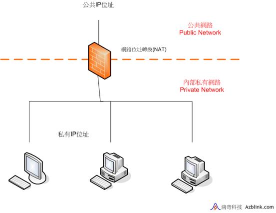 這裏,我們介紹網路位址轉換(Network Address Translation, NAT)的概念。起初,NAT透過映射一組公共IP位址給私有IP位址來隱藏內部IP使用的方式,而用來分隔公共網路和私有網路。隨著網路標準的改進與提升,埠位址轉換(NPAT—網路埠位址轉換)被導入,在此情況下,在私有網路中的主機,就可以透過將這些關聯,映射到某些埠,以此達到分享一個公共IP位址的目的。所以,每台主機在不必得到“公共的”IP位址的情況下,它們也可以使用“私有的”IP位址,在NAT設備中執行位址查找和轉換,而使這些主機看起來是一個整體。簡而言之,就是NAT可以在只有一個 IP 的情形下讓多台電腦一起連上網路。
