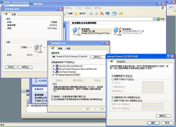 不過在某種情況下,您可能會無法釋放掉舊有的IP,為什麼呢? 因為您在您PC裡已經設定了固定的私有IP了,所以不管再怎麼努力鍵入指令要釋放IP都沒辦法釋放。解除方式可至Windows的‘控制台’→‘網路連線’→‘區域連線’→‘內容’→‘一般’中找尋‘Internet Protocol(TCP/IP)’項目,點選其內容,將設定改為「自動取得IP位址(O)」即可。