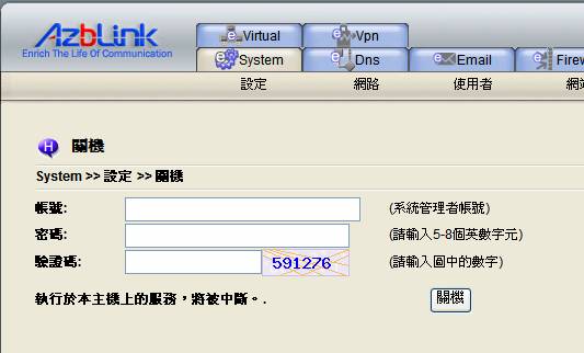 輸入管理者 admin 帳號、密碼及驗證碼後再按下關機按鈕,以執行關閉主機的工作。