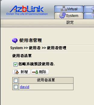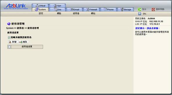 您可以用此處的功能,來 新增 和 刪除 以及 編輯管理 使用者帳號,以此決定是否讓使用者能經由Web介面來登入伺服器。