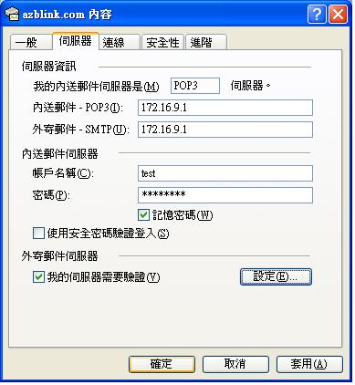 郵件發送的特定主機名稱:mail.azblink.com.tw