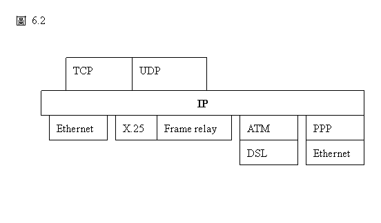 上面的圖表,顯示了部份應用中的網路協定層級。傳輸控制協定(TCP)和一種非連接型的傳輸協定(User Datagram Protocol, UDP) 都是以IP為基礎的。換句話說,這兩個協定是被IP協定所包含。TCP與UDP相同,都是在IP上層使用,所不同的是:TCP採用連線知會,資料會重新排序,而UDP採用無連線的方式,使用者必須自行解決資料順序的問題;也就是TCP 提供的是一個可靠的資料流傳送服務﹔而相對的,UDP 提供的是一個非可靠的非連線型(connectionless)的資料流傳送服務。如上圖所示,而且這IP封包還可能被包含在乙太封包框架。此外,還有些其他的協定也可能建立於TCP或UDP上。例如,http通常在TCP上執行。要得到http裏面的東西,那就首先要“打開”IP封包。