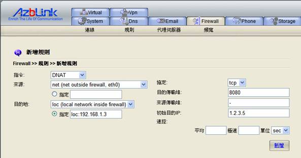 net, fw, loc, loc:192.168.1.22:80 , loc:192.168.1.2 , 3128 (埠號) |