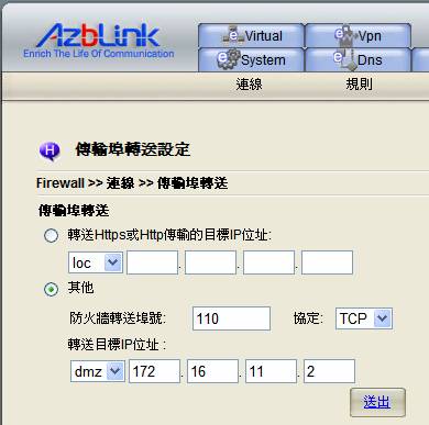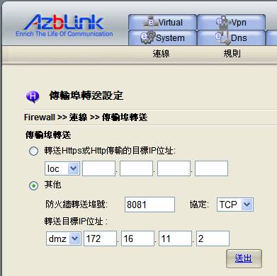 轉送目標IP位址: dmz 172.16.11.22