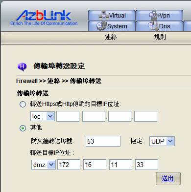 轉送目標IP位址: dmz 172.16.11.33