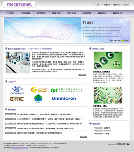 - 首頁 - 動態廣告、歡迎區塊、主要客戶LOGO、相關聯結、近期代工項目